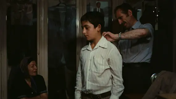 In a trilevel shopping arcade, a teenage boy who works for a tailor is besieged by two other boys who want to borrow a new suit to wear on a social outing before it’s turned over to its owner. One of the most accomplished and intricately plotted of Kiarostami’s Kanoon films, this sharply observed drama contains suspense, satire, an undercurrent of violence, and even a magic show.